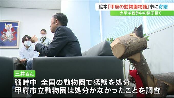 三井さんは戦時中、全国の動物園で猛獣の処分が行われる中、甲府市立動物園では処分がなかったことに疑問を持ち、調べ始めました。