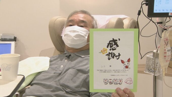 UTY ニュースピックアップ 献血回数は52年で600回!総献血量348リットル!「献血おじさん」引退…最後の日に密着 2022年5月21日(土) 21:00 国内 山梨県甲府市の男性が、52年間でなんと…献血600回を達成!このたび、活動にピリオドを打ちました。長年、献血を続ける秘訣やそこで得たものとは?西垣友香アナウンサー:おはようございます、今日は?山下修身さん…