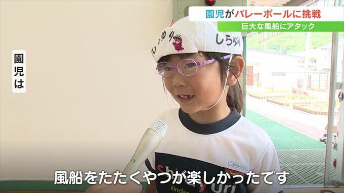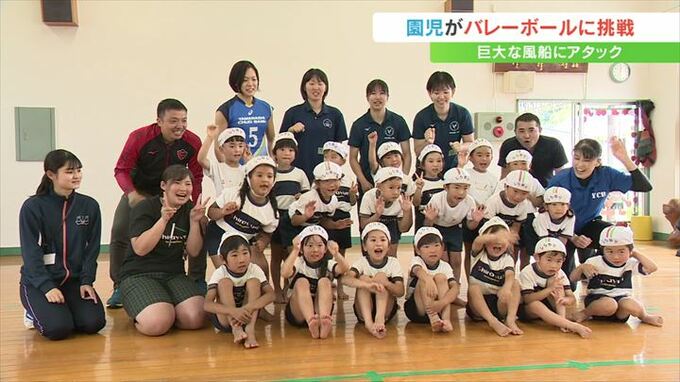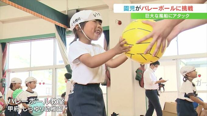 巨大な風船などを使ったバレーボール教室が甲府市の幼稚園で開かれました。