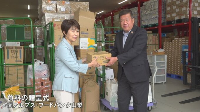 山梨県内最大の労働団体、連合山梨がコメや缶詰などおよそ500kg分の食料をフードバンク山梨に寄付しました。