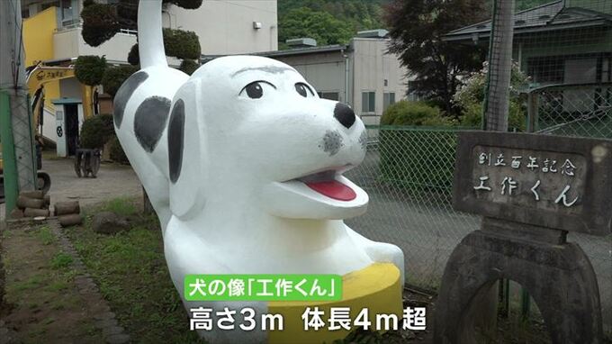校庭の端で存在感を放つ高さ3m、体長4mを超える犬の像。その名も「工作くん」