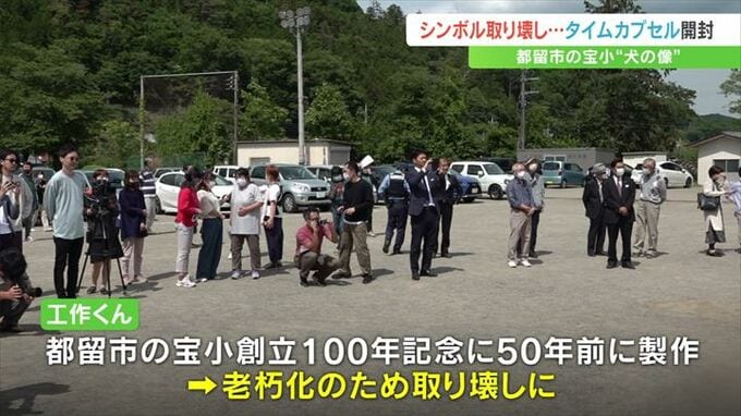 1日は工作くんを作った当時のメンバーや卒業生など50人ほどが見守り、中に入れられたタイムカプセルを取り出しました。