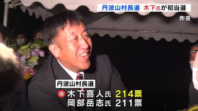 14年ぶりに選挙戦となった山梨県丹波山村長選は4日、投票と開票が行われ、新人で村の元総務課長の木下喜人さんが現職をわずか3票差で破り初当選しました。