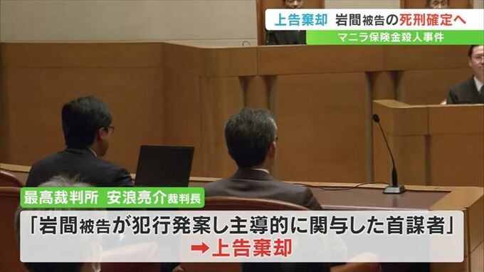 1審と2審では死刑が言い渡され、5月に最高裁で開かれた弁論で弁護側は首謀者は共犯の男で岩間被告は犯行に関与していないと無罪を主張していました。