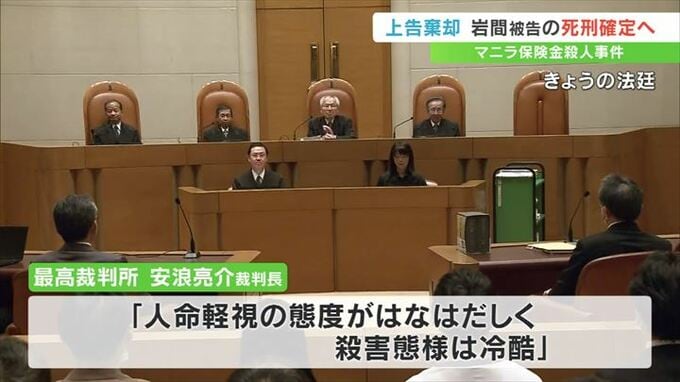 6月5日の判決で最高裁は、「人命軽視の態度が甚だしく殺害態様は冷酷」と指摘し「岩間被告が犯行を発案し、終始、主導的に関与した首謀者」と認定し上告を退けました。