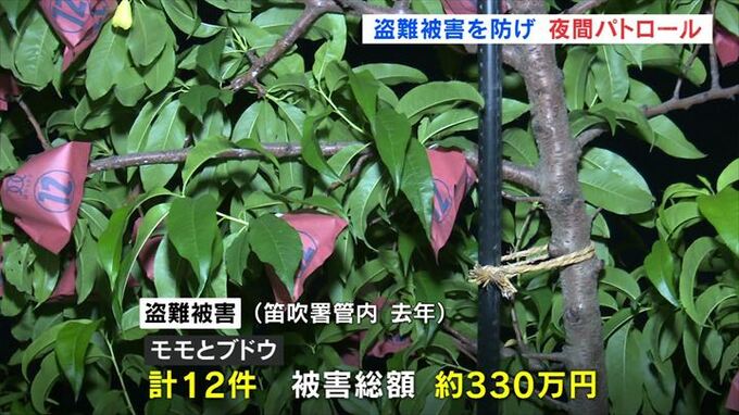 2022年は笛吹署管内で、モモとブドウの盗難被害が合わせて12件発生し、被害総額はおよそ330万円に上りました。