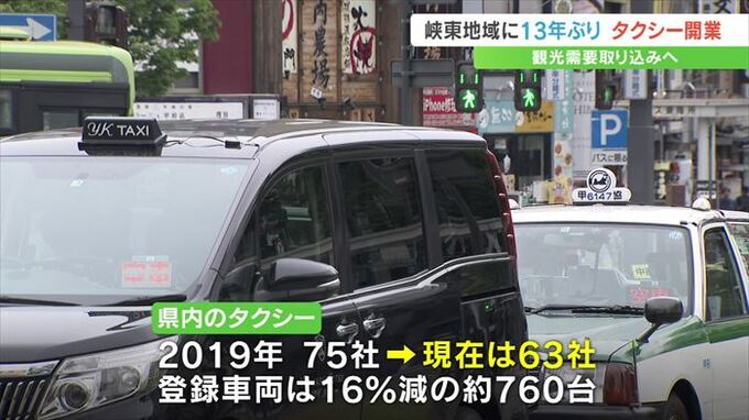 県タクシー協会によりますと、県内のタクシー事業者はコロナ禍前の2019年の75社から現在63社に減少しました。