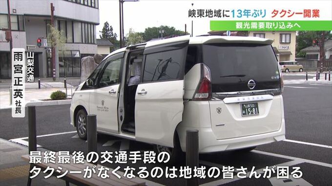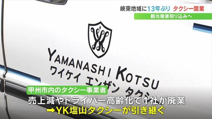 山梨県の峡東地域で13年ぶりに、山梨交通が新規タクシー事業を始めました。