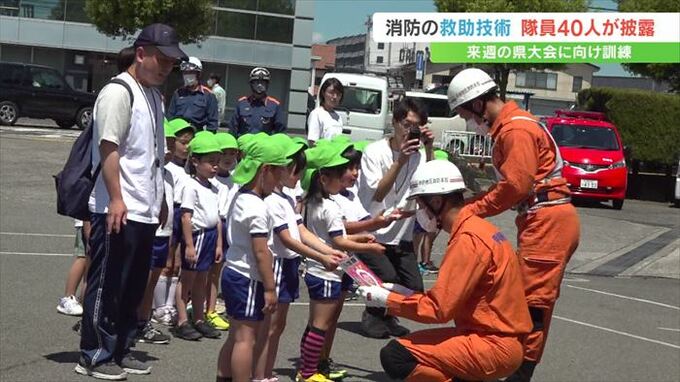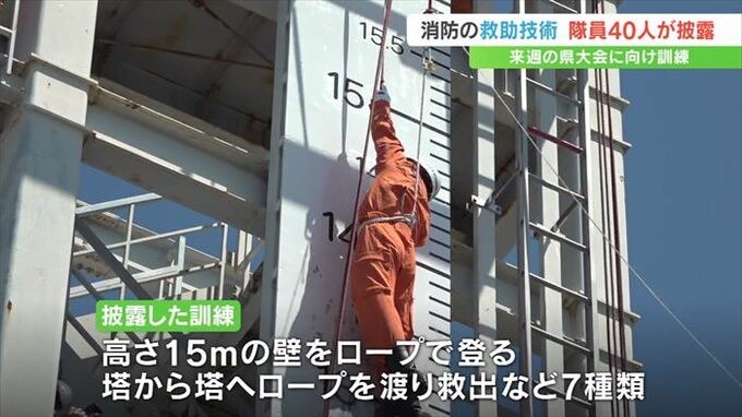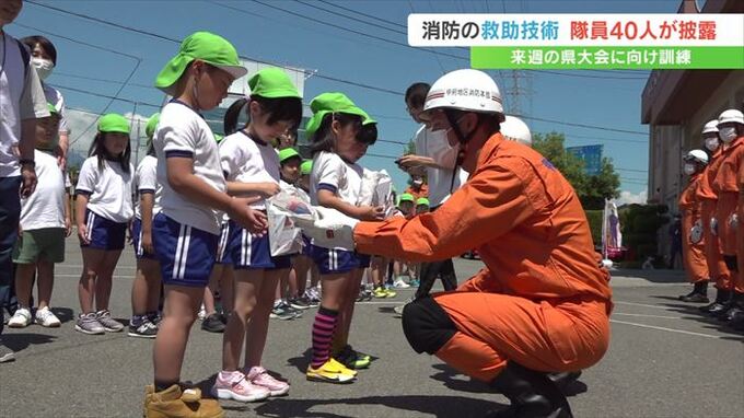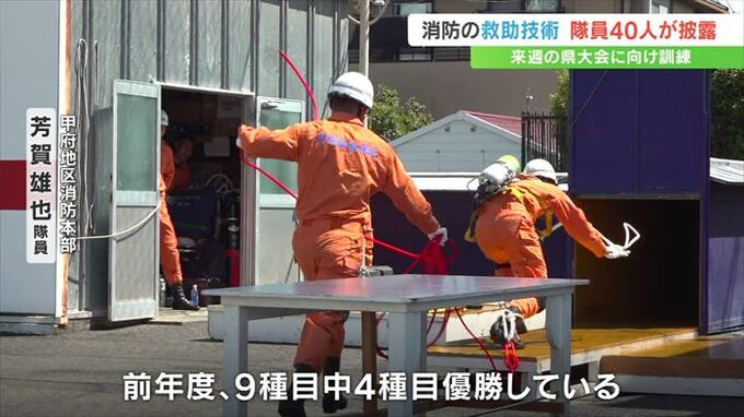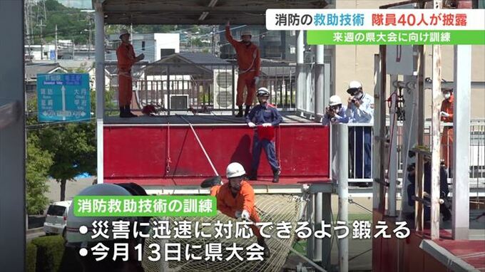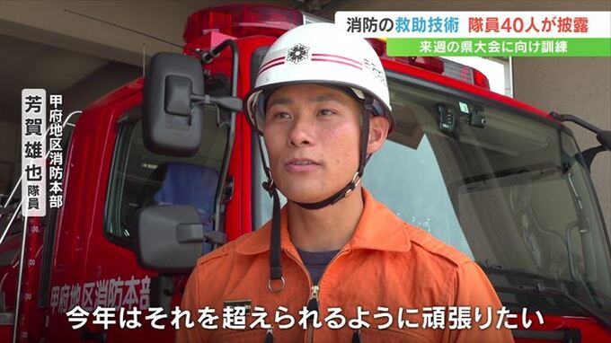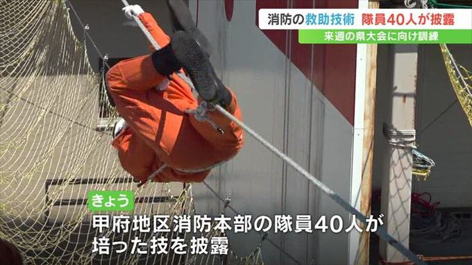 消防の救助技術を競う山梨県大会が6月13日に開かれるのを前に、甲府地区消防本部の隊員が訓練の成果を披露しました。