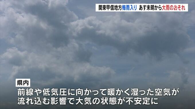 8日の県内は晴れているところが多くなっていますが、広い範囲でこの先1週間雨の日が多くなる見込みで、気象庁は8日、関東甲信地方が梅雨入りしたとみられると発表しました。