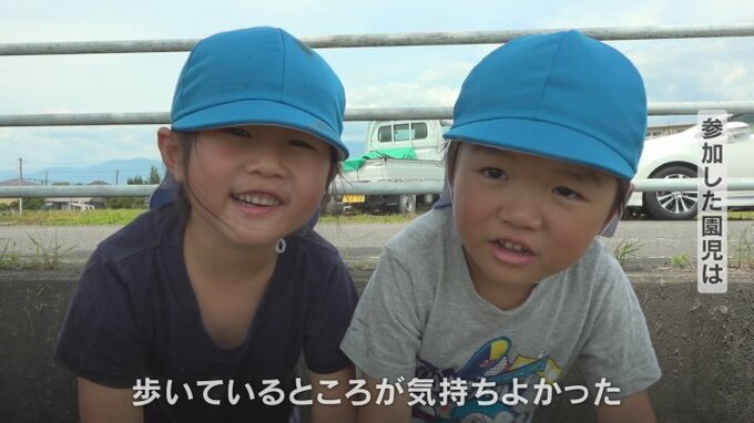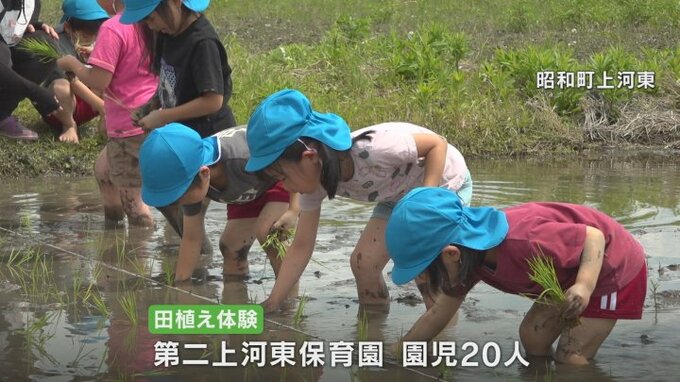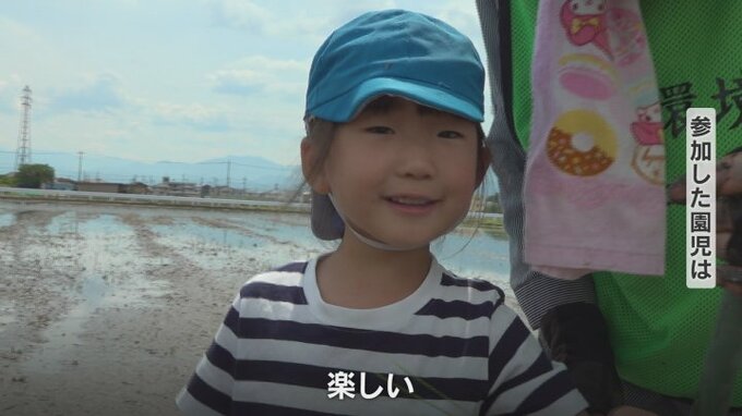 田植えをしたのは昭和町の第二上河東保育園の園児約20人です。