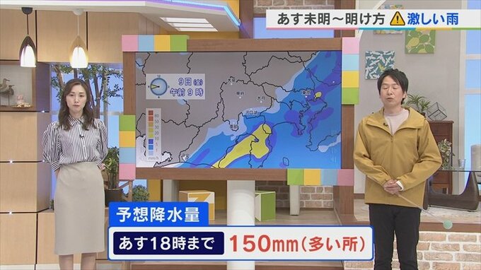 先週金曜日の大雨は、多いところ350mmほど降りましたので、それに比べれば少ない量とはなりますが、先週の大雨に加えて今回の雨で、地盤が緩んでいる可能性もありますから、それによって土砂災害に特に注意が必要な状況です。