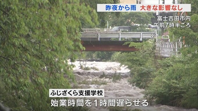 この雨の影響でふじざくら支援学校が始業時間を1時間遅らせました。