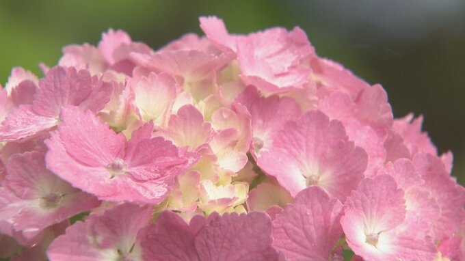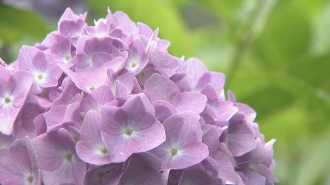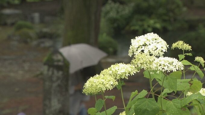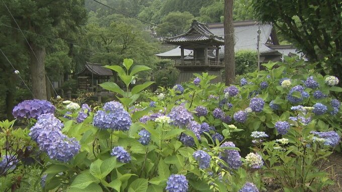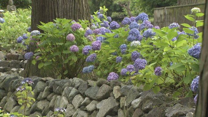 梅雨を彩る花の話題です。山梨県韮崎市の寺で1000株を超えるアジサイが満開となっています。