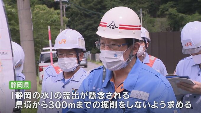静岡県はこの調査により地下水、本来静岡に流れるべき「静岡の水」の流出が懸念されるとして静岡県境から300mまでの区間を掘削しないよう求めました。