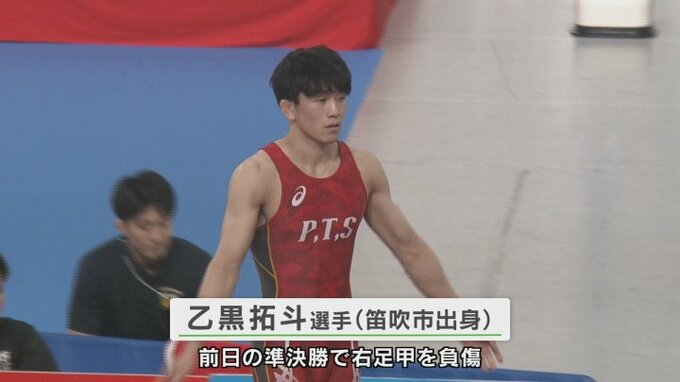 フリースタイル65kg級の乙黒選手は前日の準決勝で右足の甲を負傷し、決勝出場が危ぶまれていました。