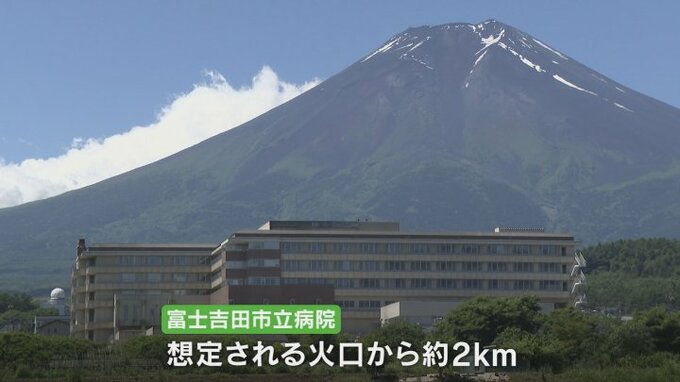 想定される火口から約2kmに位置する、富士吉田市立病院です。