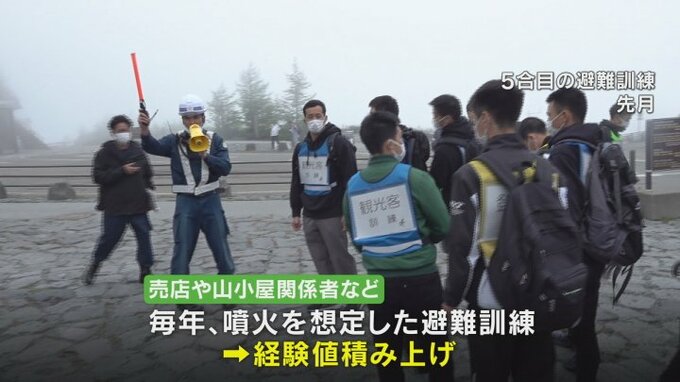 富士山5合目の売店や山小屋関係者らは毎年、噴火を想定した避難訓練を行い、避難誘導の経験値を積み上げています。