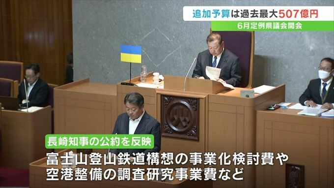 また富士山登山鉄道構想の事業化の検討費や、リニア開業による新たな空港需要を見据えた調査研究費など、長崎知事の公約を反映した事業費が盛り込まれています。
