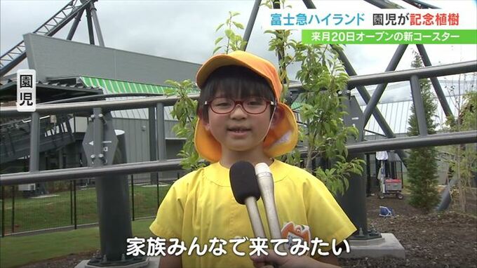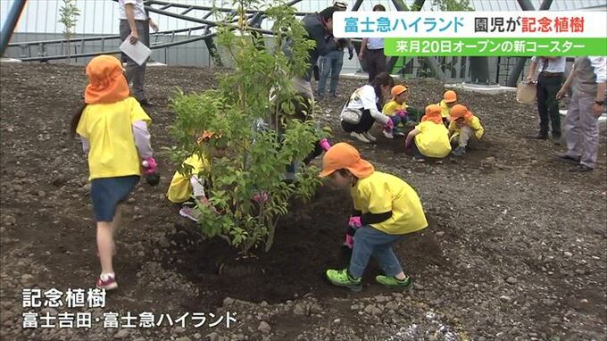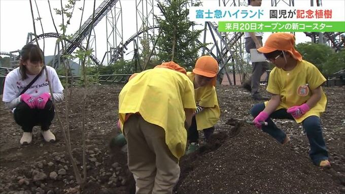 富士急ハイランドに7月オープンする予定の新コースターの周りに保育園児が記念の植樹を行いました。