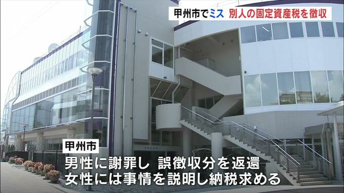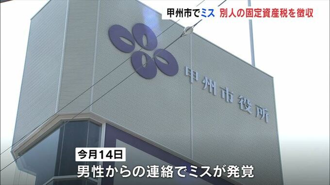 山梨県甲州市で市内の男性から別の人の固定資産税を誤まって徴収するミスがあったことが分かりました。