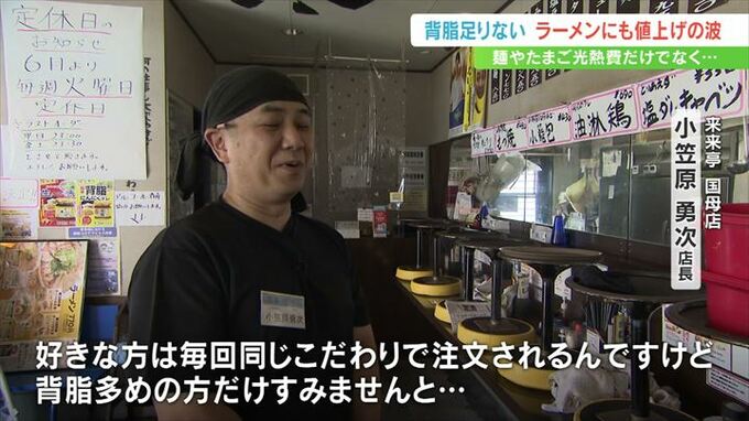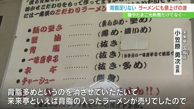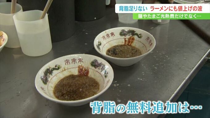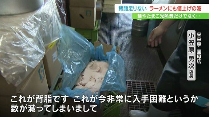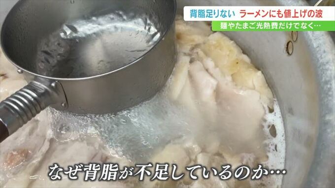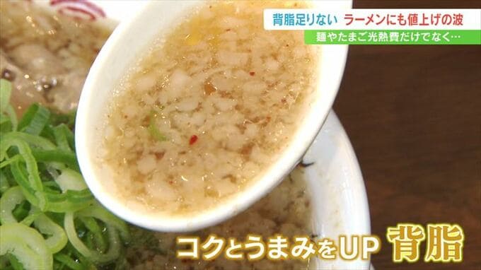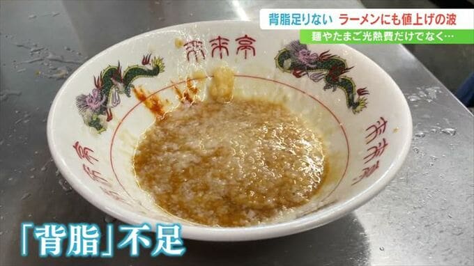 麺や卵、光熱費だけでなく、こってりしたラーメンに欠かせない「背脂」が不足し、値上がっています。