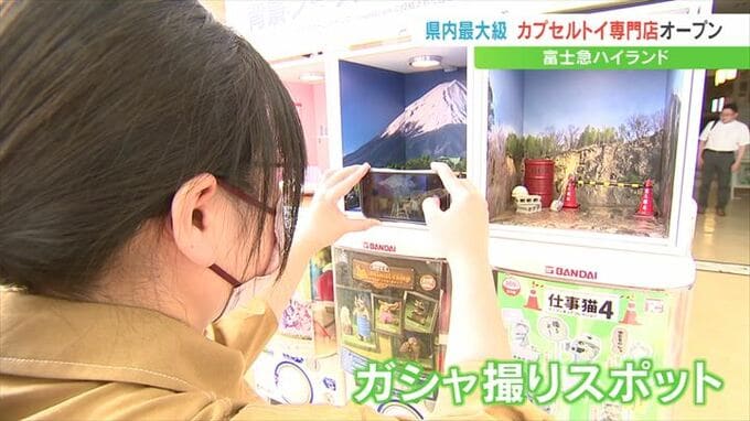 店内には買ったおもちゃを富士山を背景に撮影できる「ガシャ撮りスポット」を設置して、富士急ハイランドならではの楽しみも用意しています。