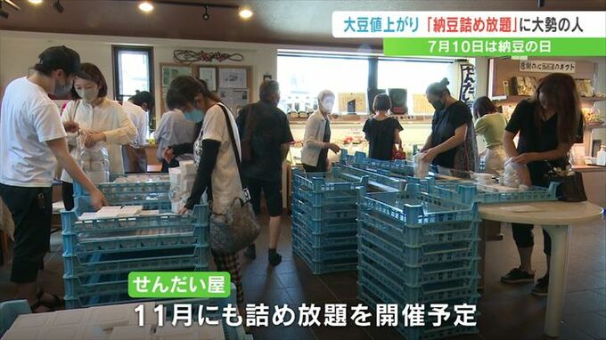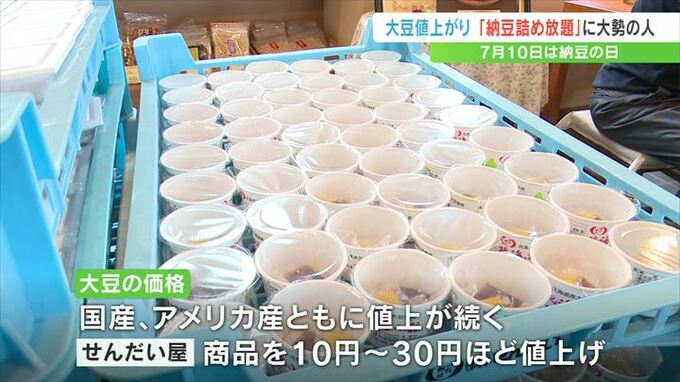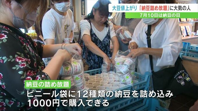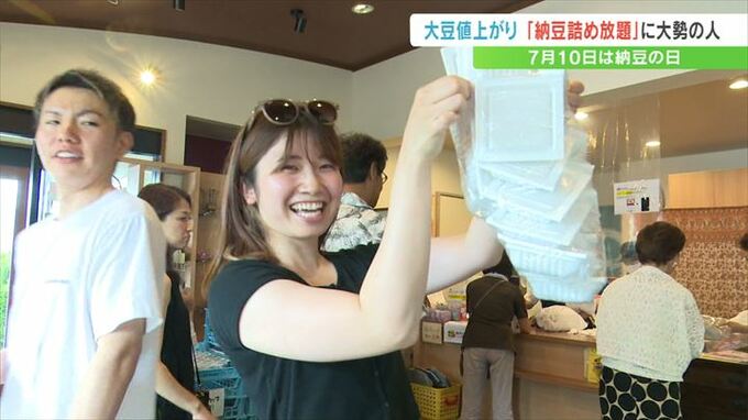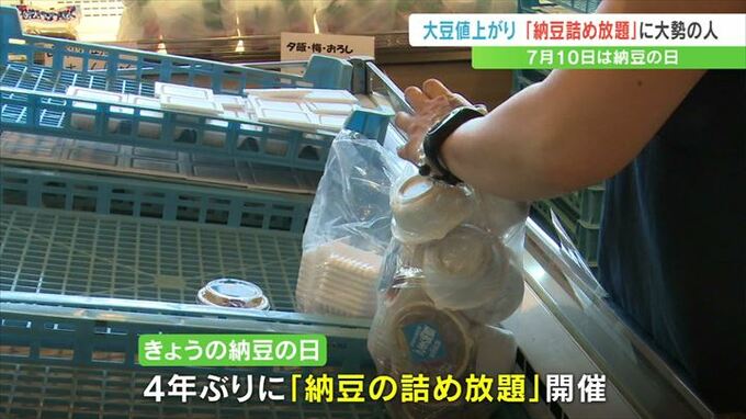 7月10日の「納豆の日」にあわせ、納豆専門店が「詰め放題」を行いました。