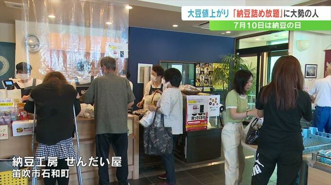 大豆製品が値上がりする中、納豆を求めて店には大勢の人が訪れました。