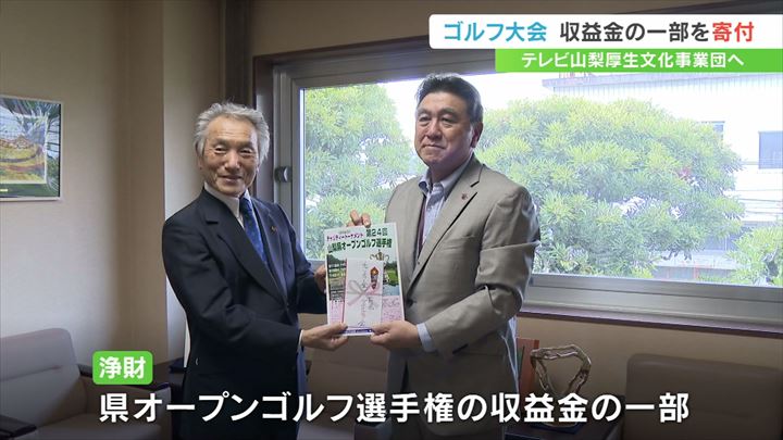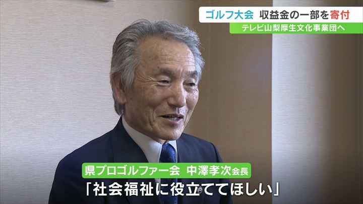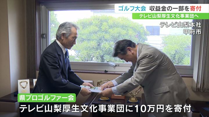 プロとアマチュアが出場したゴルフ大会の収益金の一部が、テレビ山梨厚生文化事業団に寄付されました。