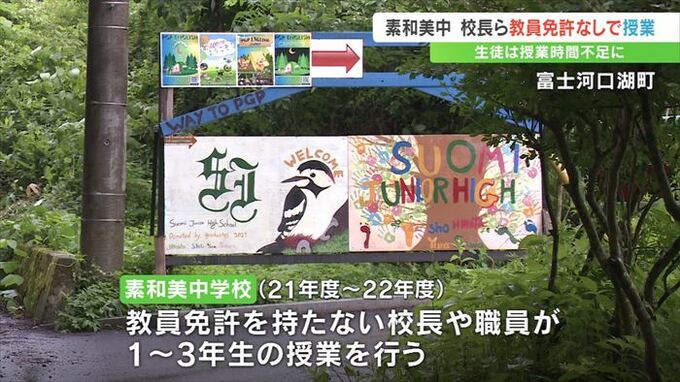 県教育委員会によりますと富士河口湖町にある私立・素和美中学校で2021年度から2年間、教員免許を持たない校長や職員が1年生から3年生の8人に授業を行っていたということです。