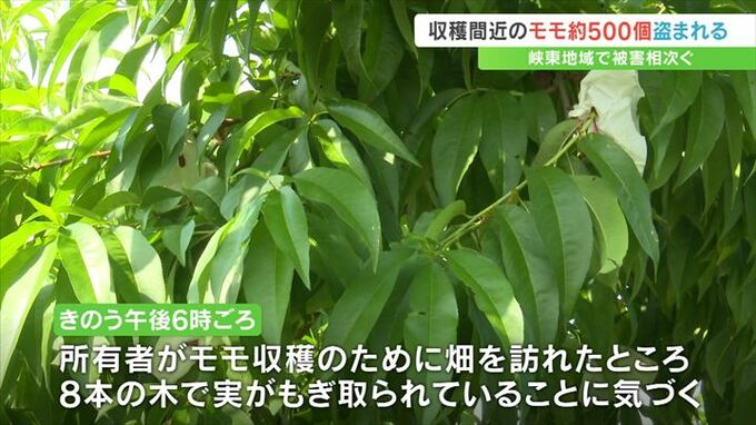 警察によりますと、16日午後6時ごろ畑の所有者がモモの収穫のために畑を訪れたところ、8本の木からモモがもぎ取られていることに気がつきました。