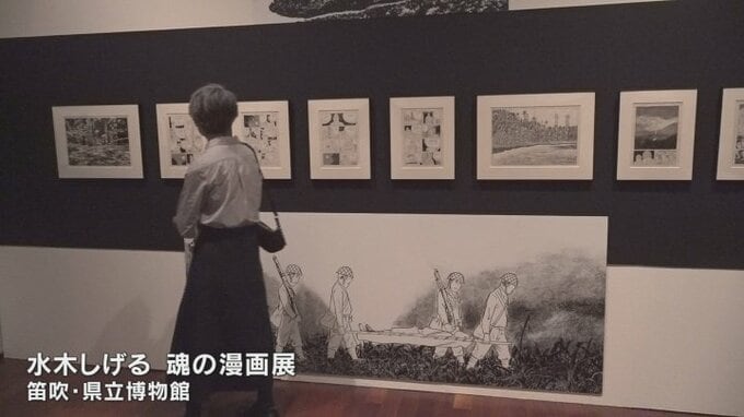 山梨県立博物館で開かれている、漫画家・水木しげるの作品展。