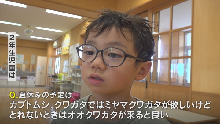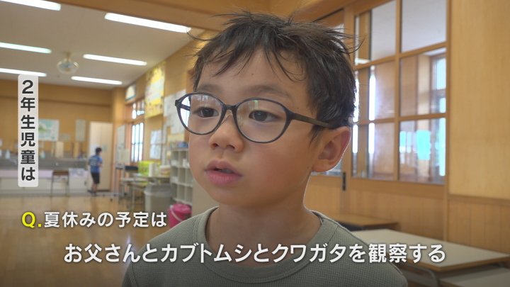 「夏休みはお父さんとカブトムシとクワガタを観察する。カブトムシ、クワガタではミヤマクワガタが欲しいけど、とれないときはオオクワガタが来ると良い」