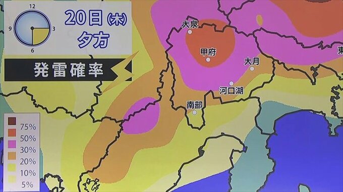 きょうと比べて晴れる時間が長くなるので、中北、峡東を中心に1~2℃高くなる予想となっています。