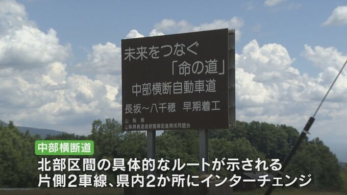 こうした中、19日に国土交通省から県に北部区間の具体的なルートが示され、道路は片側2車線で県内には2か所のインターチェンジが設けられる予定であることがわかりました。