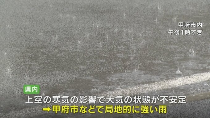 21日の県内は、上空に入り込んだ寒気の影響で大気の状態が不安定となり、甲府市などで局地的に強い雨が降りました。