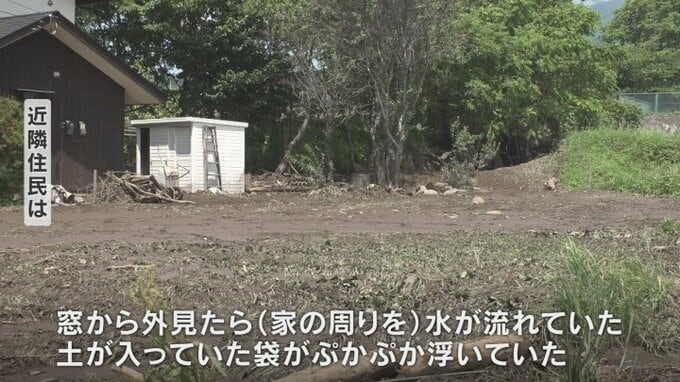 窓から外見たら(家の周りを)水が流れていた。土が入っていた袋が、ぷかぷか浮いていた。(住んでいて)初めてです。