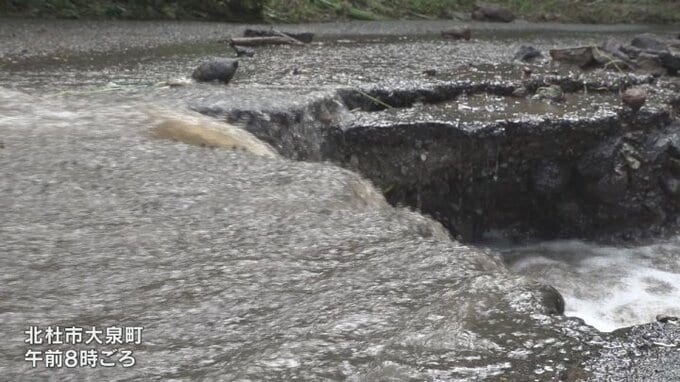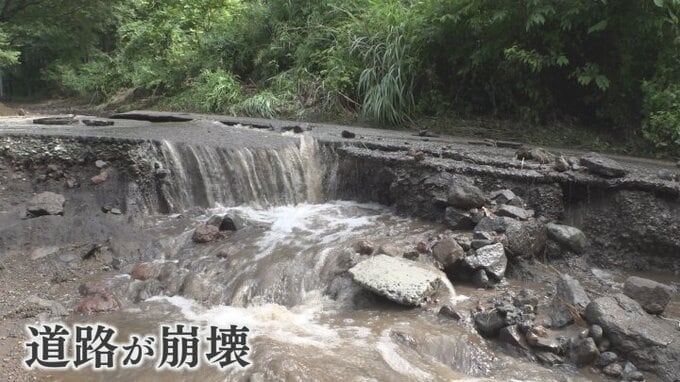 大泉町の別荘地では道路の一部が崩れたほか、土砂が流出し軽乗用車が約5m流されました。