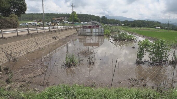 北杜市大泉町にある泉川の水があふれ、土砂が道路や近くの畑などに流れ込みました。