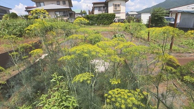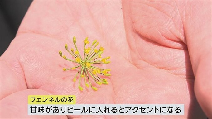こちらが次の新作で使おうとしている自家製のミント。今花が咲いているのがフェンネルの花。少し食べると甘味があってちょっとアクセントにビールに入れたりしています。