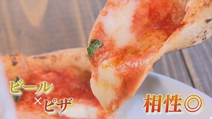 すっきりとした喉ごしのビールとチーズたっぷっりのピザがとてもよく合い、フレッシュなハーブの味がするので食欲が増します。