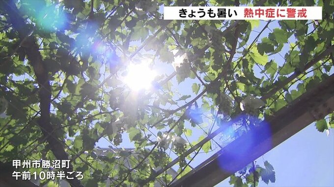 日中の予想最高気温は甲府で38度、河口湖で33度で気象台はこまめな水分補給や適切な冷房の使用など熱中症に警戒するよう呼びかけています。