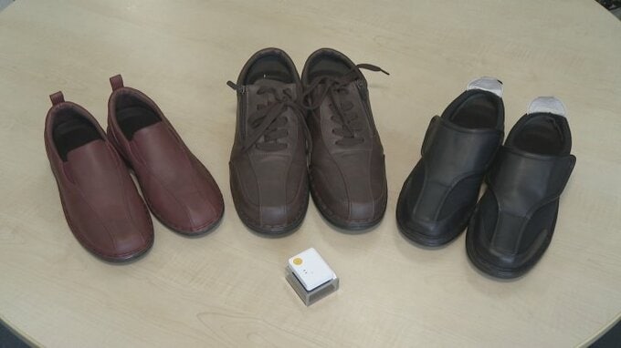 山梨県中央市にあるシステムインナカゴミが開発した「見守りシューズ」。