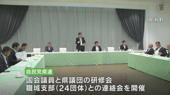 自民党県連は7月28日に国会議員と県議団による「国政課題に関する研修会」を開催した他、職域支部、支援を受けている24の業界団体の関係者との連絡会議も開きました。
