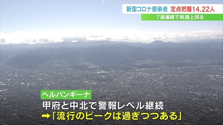 新型コロナウイルスについて、山梨県内の先週1週間の感染者数は1医療機関あたり14.22人で7週連続で前の週を上回りました。