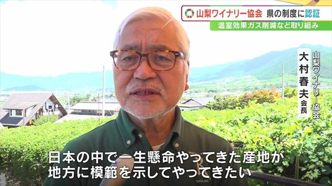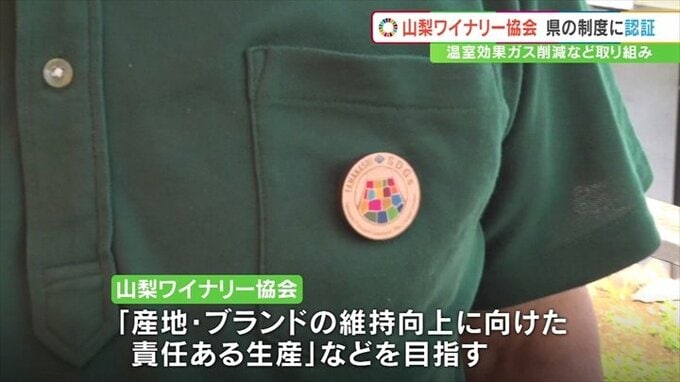 峡東地域を中心としたワイナリー67社で作る山梨ワイナリー協会は「産地、ブランドの維持向上に向けた責任ある生産」などを目指すとして、8月に認証を受けました。