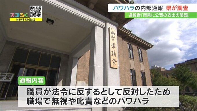 山梨県の議会事務局の職員が、上司からパワーハラスメントを受けたとする内部通報があり、県は調査している事を明らかにしました。