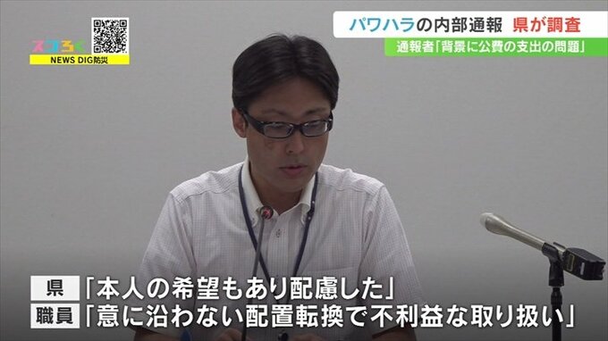 なお、通報した職員は8月9日付で別の部署へと異動していて、県は本人から希望もあり配慮をしたとしていますが、職員は意に沿わない配置転換で「不利益な取り扱い」としています。