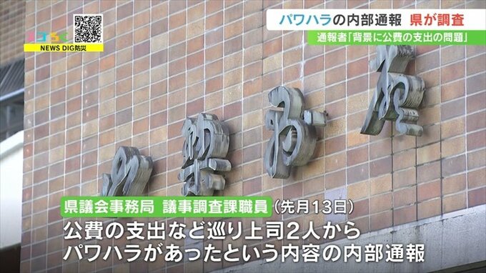 7月13日、県の人事課に対して県議会事務局の議事調査課職員から公費の支出などを巡り、上司2人からパワハラがあったといった内容の内部通報がありました。